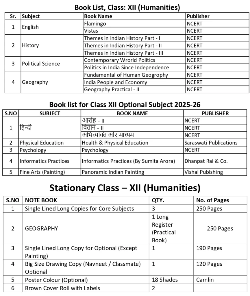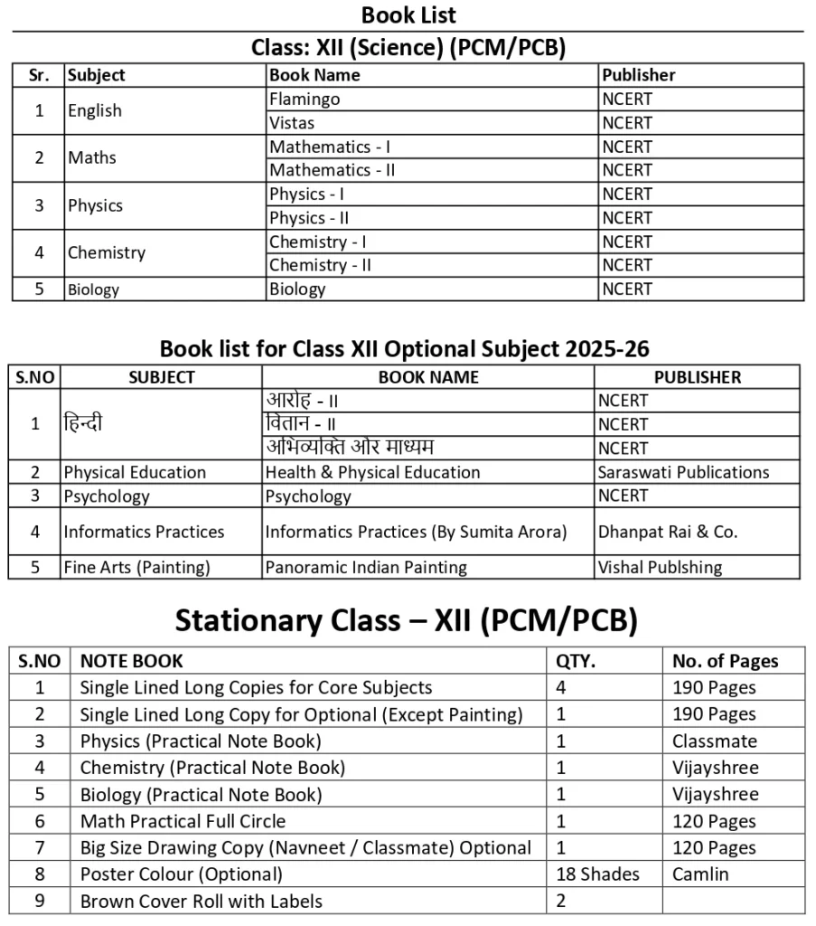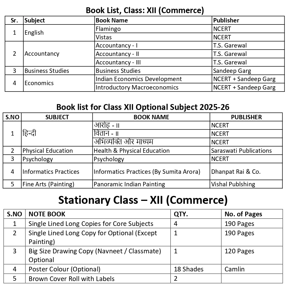 Note: Parents are free to purchase books according to the booklist from anywhere. There is no particular shop fixed by the school.